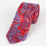 • A red, blue and silver paisley men's tie in a woven microfibre blend
