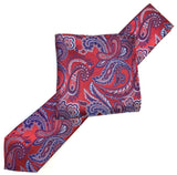James Adelin Luxury Paisley Neck Tie in Red, Blue and Silver