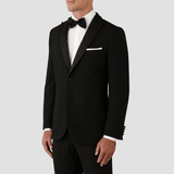 Tailored Fit Tuxedo Jacket / Fully Fused Front / Single Button / 75mm Satin Peak Lapel / Satin Jet Pocket Details / 4 Satin Covered Buttons on Cuff / Side Vents / Fully Lined