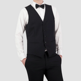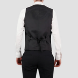 Classic Fit Black Vest / Four Button Front / Satin Back with Adjustable Tab / Pair with the Joshua Big Man Suit Trouser and the Maximus Big Man Suit Jacket / Wool and Polyester Blend
