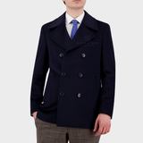 Savile Row Mens Jason Pea Coat in Navy Wool Cashmere Blend
