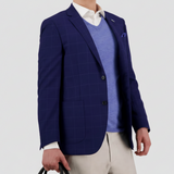 Navy Wool Checked Design / Slim Fit / Notch Lapel / Single Breasted / Double Button / Chest Pocket / Great Business or Events Suit Jacket / Standout Event Jacket / Wear With Men's Chino Pant / Jacketing Finish / LIMITED STOCK