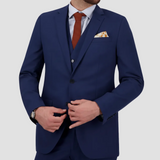 A Denim Blue Wool Blend Mens Suit / Great for Business or Events / Tailored Fit / Double Button Front / Available with a Classic Fit or Tailored Fit Suit Trouser /