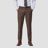 Savile Row Tailored Fit Mens Jesse Textured Trouser in Latte Brown Pure Australian Merino Wool