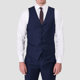 Savile Row Tailored Fit Mens Saul Vest in Navy Stripe SW7 Pure Wool