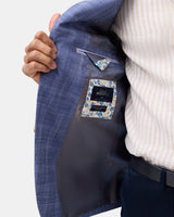 SLIM FIT WITH BUILT-IN POCKET SQUARE SINGLE BREASTED, TWO BUTTON FRONT TWO FRONT SIDE FLAP POCKETS & ONE CHEST WELT POCKET REAR SIDE VENTS FULLY LINED WITH ACCENT TRIMMING THREE INTERNAL JET POCKETS 4X NON-FUNCTIONAL BUTTONS AT SLEEVE OPENING |